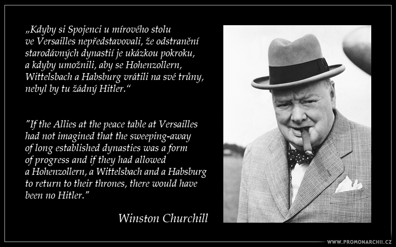 „Kdyby si Spojenci u mírového stolu ve Versailles nepředstavovali, že odstranění starodávných dynastií je ukázkou pokroku, a kdyby umožnili, aby se Hohenzollern, Wittelsbach a Habsburg vrátili na své trůny, nebyl by tu žádný Hitler.“